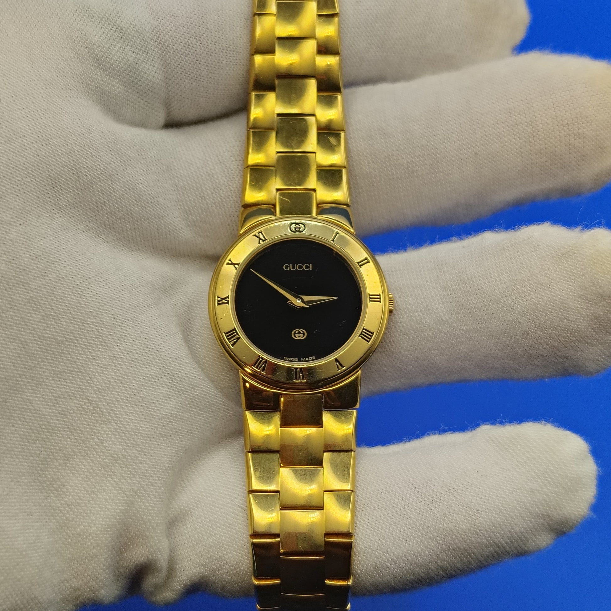 Vintage 1984 Gucci 3300L Swiss Made 14mm Women's Quartz Luxury Watch 24kt GP