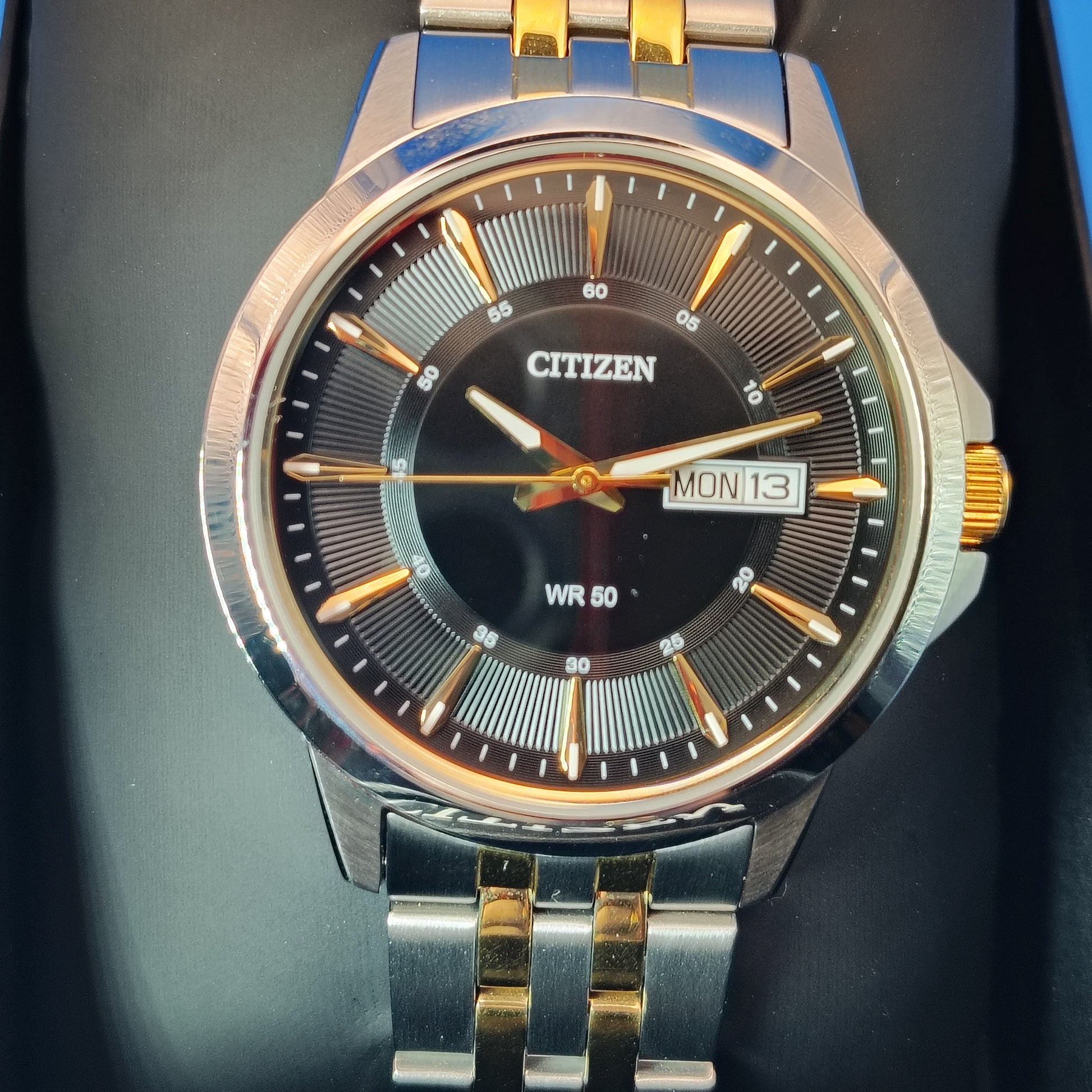Vintage Citizen Day Date 40mm Mens Quartz Two Tone Luxury Watch Full Set NOS NEW